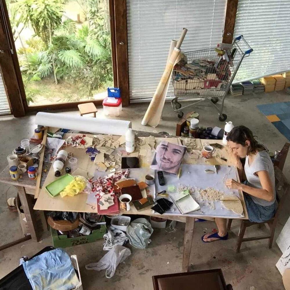 In addition to the memory that Katharina sees as a relevant legacy, as a draft to be kept rather than erased, her work has an interest in construction. For this reason, her studio and her daily life – currently in Petrópolis, a small town in the mountains in Rio de Janeiro, and previously in the city of Rio itself – become relevant references in her craft. Her own scenes and locations are, at times, the subject of her paintings, in place of images from the web or from papers and magazines, playing a key role in her compositions. The artist also uses a play of hide and seek, at times creating completed works while at other times allowing the emptiness and the observer’s imagination to provide the final contours of her propositions. Her ideas also evolve in a more experimental fashion, such as in the underwater performance in which Katharina embroiders over multiple surfaces and thus mixes even more the attributes of visibility and experience.
